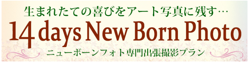 生後14日位までが撮影に適しており、生後30日以上経過してから撮影する、お宮参り等のベビーフォトとは異なるスタイルで撮影します。